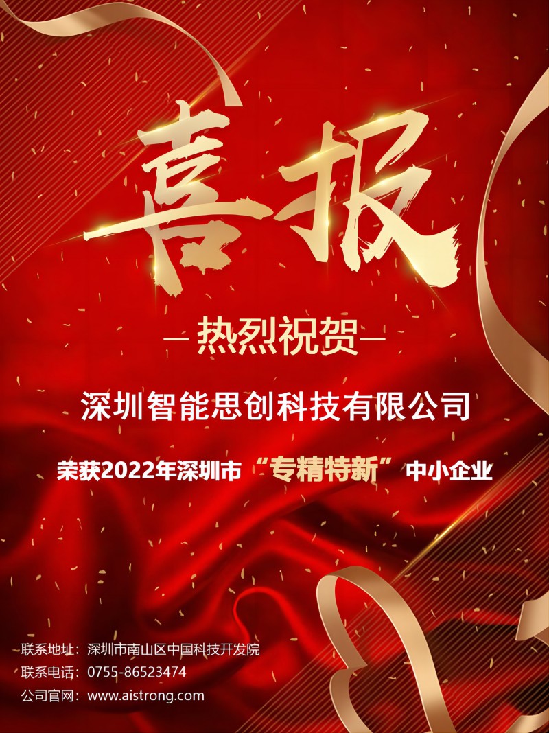 喜讯!智能思创荣获“2022年深圳市专精特新中小企业”认定