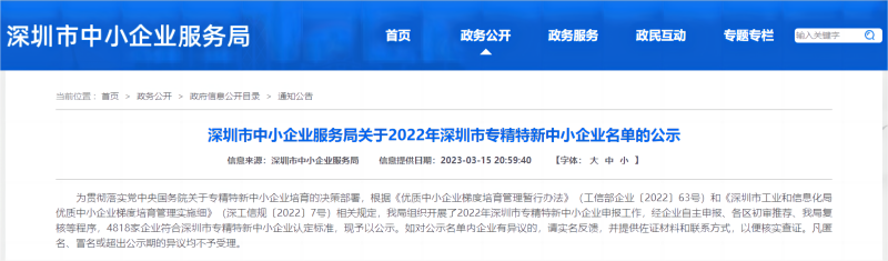 3月15日,深圳市中小企业服务局发布了《关于2022年深圳市专精特新中小企业名单的公示》,凭借技术创新和商业实践方面的杰出表现,智能思创成功成为深圳市专精特新企业的一员,这将是一个重要的里程碑,证明了我们在技术研发、市场开拓、人才培养等方面的实力和成就。